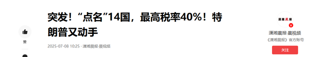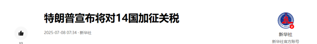 特朗普这次算是踢到铁板了。给14个国家下最后通牒,要么接受最高40%的关税,要么等着8月1日"算总账"。